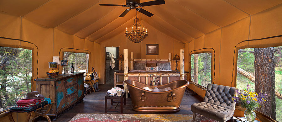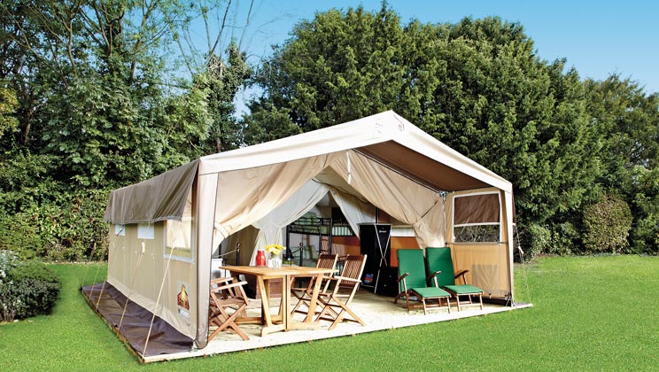 アウトドアシーンでは今「グランピング:贅沢なキャンプ」が人気なようで常設の立派なテントに泊まるようです。