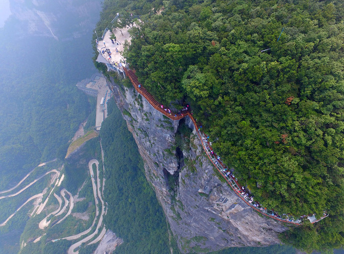 以前中国の透明なガラスの橋をご紹介しましたが今回ご紹介するのは中国内陸部の人気の景勝地「天門山」にできた透明な崖の道です。