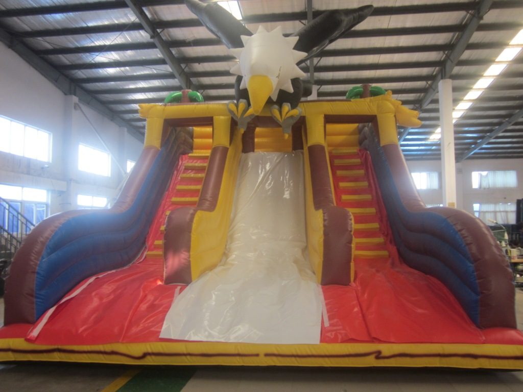 エア遊具新商品イーグルスライダーが完成しました。大きな鷲が遠くから見てもインパクト十分です。