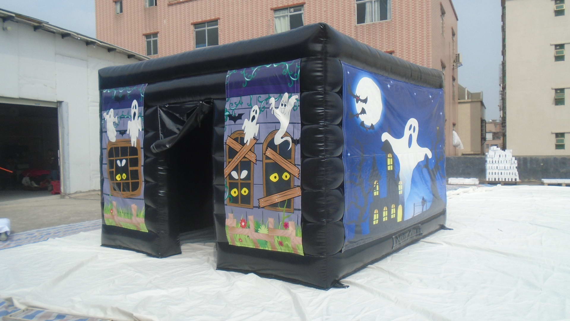 エア遊具新商品 エコノミーバウンサー&ホラーハウス 2016年9月26日 kansaisa エコノミーバウンサーのA型エアマットとミニホラーハウスが完成しました。 エアマットはお客様のご希望の配色で仕上げております。 今回、当社オリジナルエア遊具用の素材の色に「うすピンク」と「海:青地に白のライン」が加わりました。 スピードガン・エア遊具の関西エスアンドエー