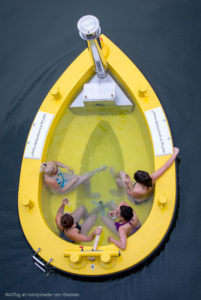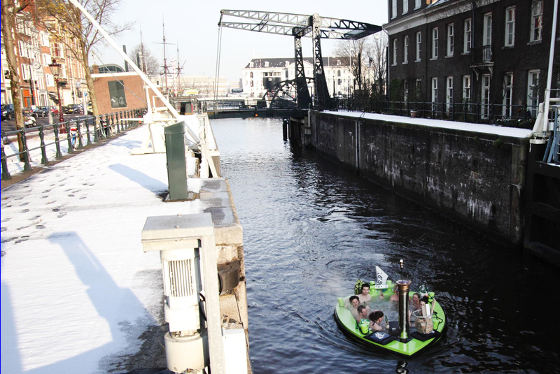 湯船に浸かりながら運河などを走らせて楽しむようですね。