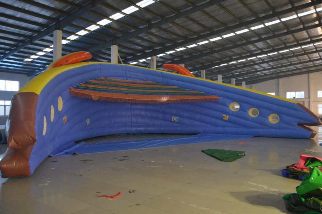 エア遊具新商品巨大な海賊船をクランケン(大きなタコの怪物)が襲うウォーターパークが完成しました。
