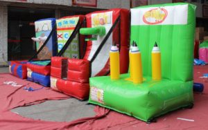イベント遊具, エア遊具新商品 エアー式カーニバルゲーム 2018年2月14日 kansaisa 空気で膨らませるカーニバルゲームが完成しました。 1台の送風機で4基を膨らませて使用できます。 (台数を減らすこともできます。) ゲームは鉛筆の輪投げ、バスケット、3目並べ、牛の角の輪投げ、になります。 ※レンタル会社をご紹介いたします。 スピードガン・エア遊具の関西エスアンドエー