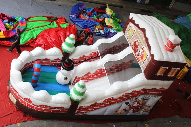 エア遊具新商品クリスマスをテーマにしたエアスライダーが完成しました。