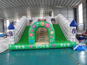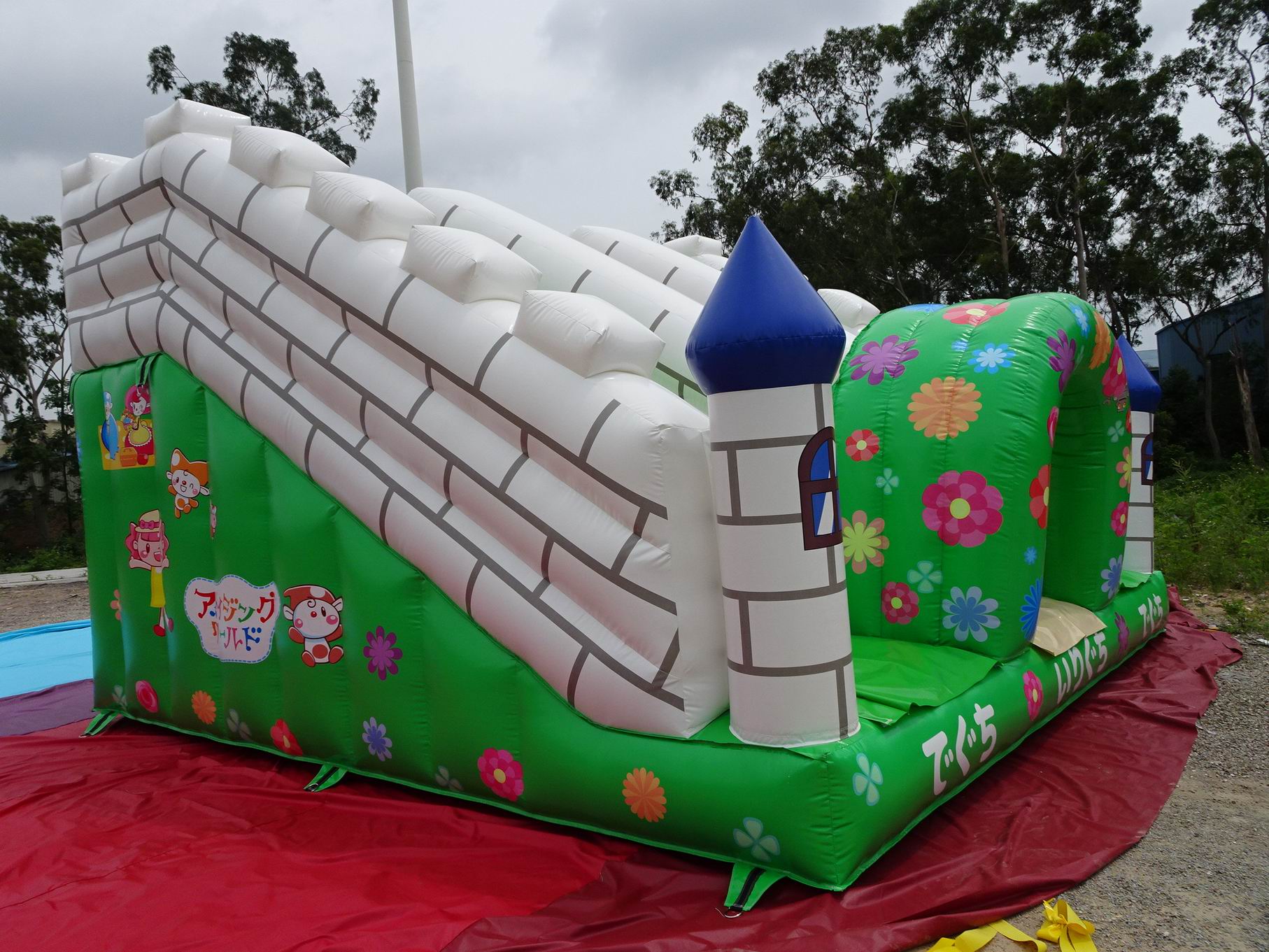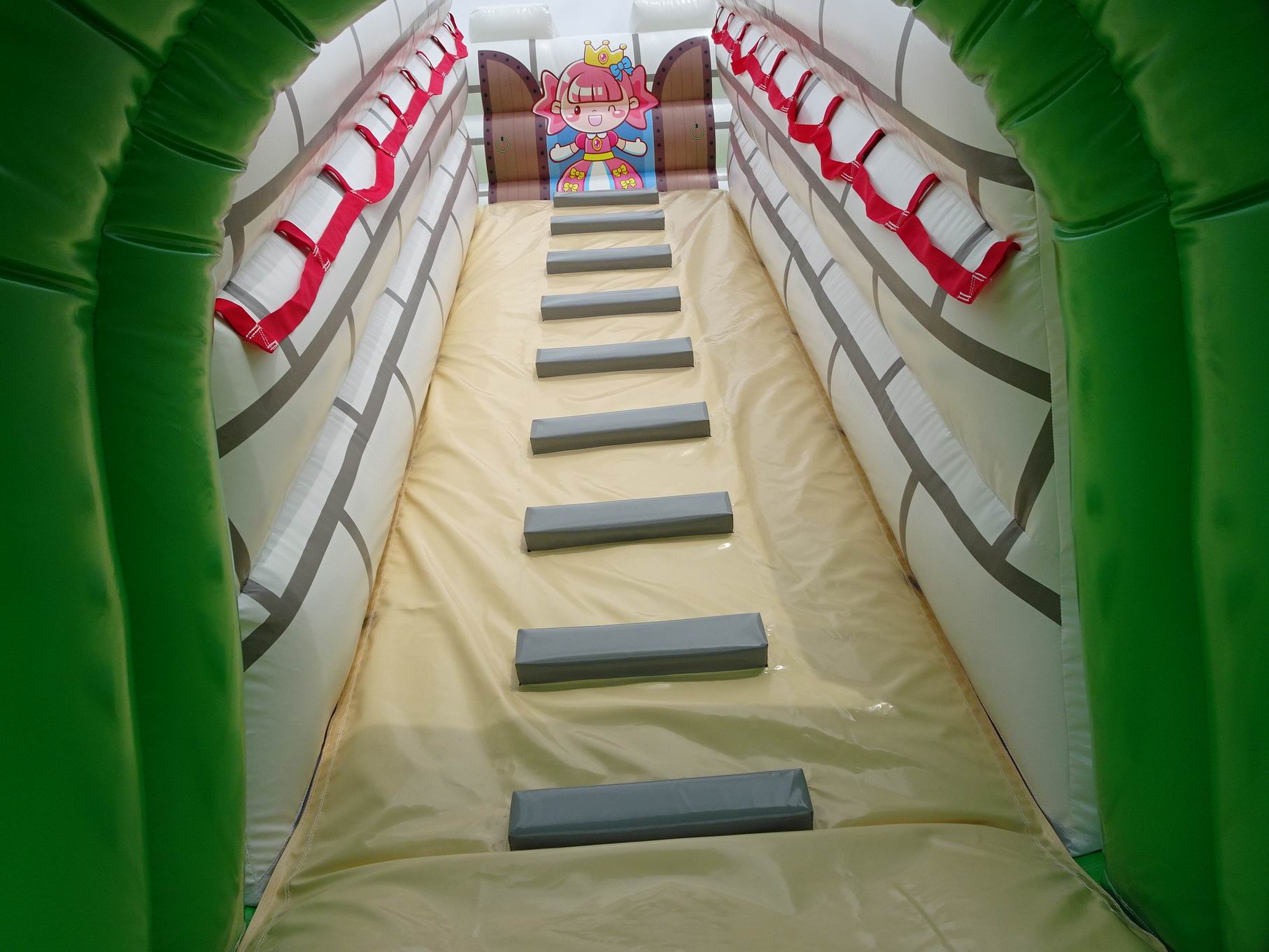 エア遊具新商品 オリジナル滑り台 2019年7月4日 kansaisa 屋内遊園施設様むけに滑り台が完成しました。 お城をイメージしたデザインにキャラクターをプリントしています。 スピードガン・エア遊具の関西エスアンドエー