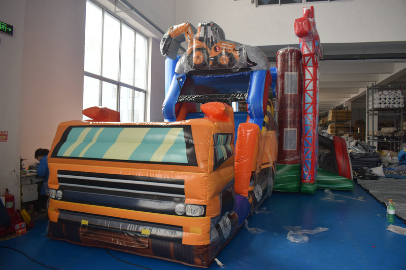 トランポリンと滑り台が合わさった(コンボ)エア遊具が完成しました。