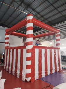 前回ご案内した盆踊り櫓(空気密封式)に続いて今回は送風式の盆踊り櫓が完成しました。