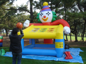 ワールドカップに便乗して今回は当社が企画・製造・輸入販売などしたバスケット関連のエア遊具をご紹介。