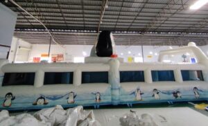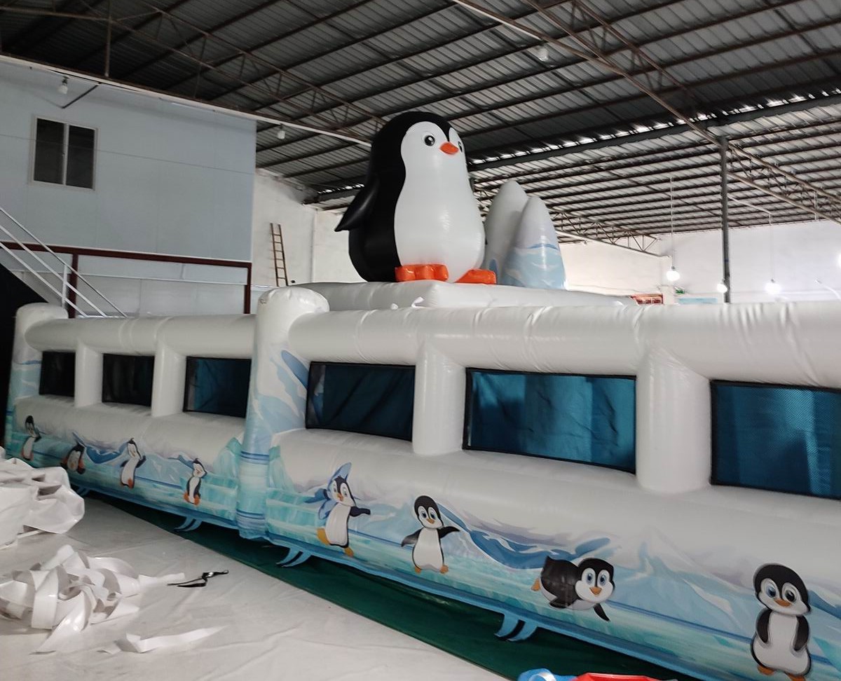 イベント遊具, エア遊具新商品, 国内情報, 新商品 ペンギンの迷路 2024年6月3日 kansaisa 涼しげなペンギンのデザインの迷路が完成しました。 上部にミストホースを設置することもできますので炎天下でも涼しく楽しめます。 エア迷路はコロナ禍で非常に成長した分野で今では懐かしい言葉の「三密」にならない遊具です。 また年齢を問わず非常に多くの参加者が体験できるのでプロスポーツの来場者向けのイベントでも人気です。 ★レンタル会社をご案内します。 スピードガン・エア遊具の関西エスアンドエー