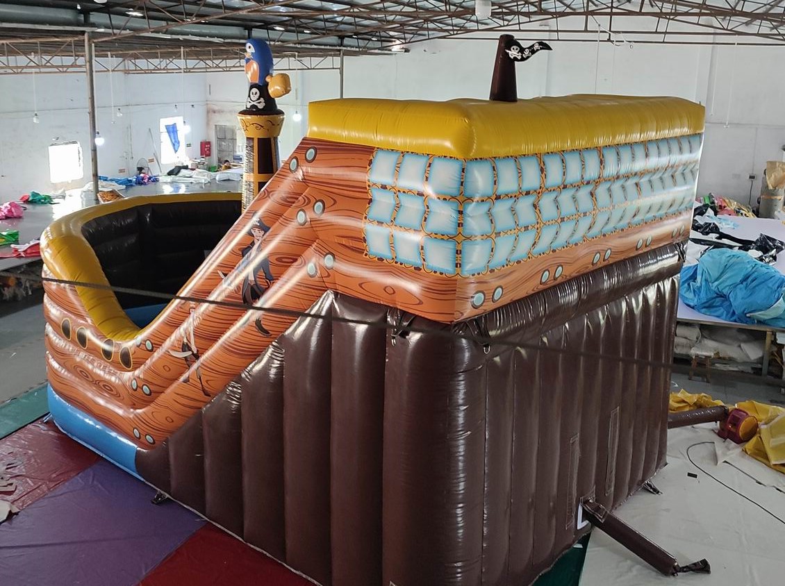 イベント遊具, エア遊具新商品, 国内情報, 新商品 海賊船のプレーランド 2024年7月30日 kansaisa エア遊具の「パイレーツシップ」が完成しました。 海賊関連も恐竜同様にライセンスなど関係なくデザインできる人気製品です。 おかげさまでエア遊具も多くのご注文いただき秋までは連日、製造&完成発表が続きそうです。 ★レンタル会社をご案内いたします。 スピードガン・エア遊具の関西エスアンドエー