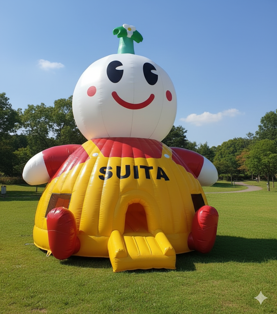 当社が所在する吹田市の人気キャラクター「すいたん」のドームバウンサーが完成しました。