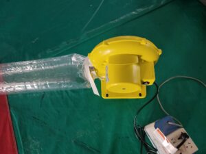 透明のバルーン抽選機の1気室モデルが完成しました。