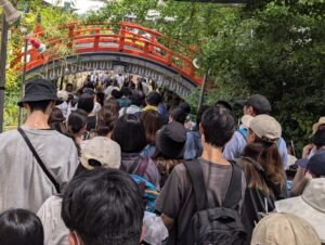 と提言しながら無謀にも3連休の海の日に京都下賀茂神社の「みたらし祭」に「車」で伺いました。凄い人の数で神社の駐車場に入るために外周を2周しました。:汗(暑い中バイクで誘導してくれた婦人警官さんやイライラした私にも笑顔で接していただいた誘導員には感謝&反省しています。:ご利益も返却します。)