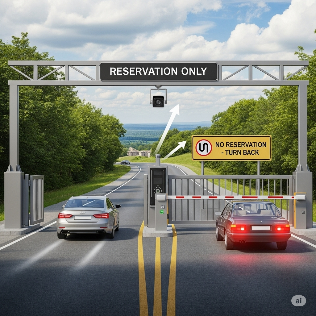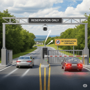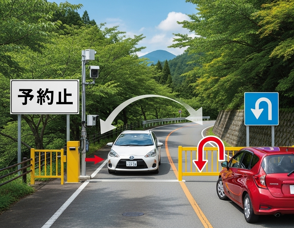 駐車場を予約制にして、駐車場のだいぶ手前の道路でナンバー認識ゲート(既に空港や大型SCで活用)を設置して予約のない車はそれ以上の進入をができなくしてUターンしてもらう。