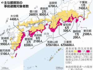 南海トラフ地震の臨時情報のうち、切迫度が高い「巨大地震警戒」が出た場合、事前避難の対象となる住民は、全国で少なくとも52万人を上回ることがわかりました。