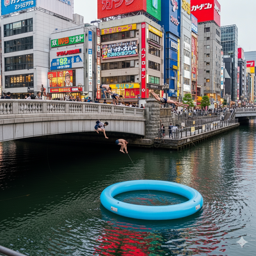 禁止しながら安全対策を取るくらいなら、阪神優勝などのめでたい時、イベントとして、そして時間を決めて観光客もダイビングできるようにする方が観光資源(他ではできないオンリーワンな体験)として有益な気もします。