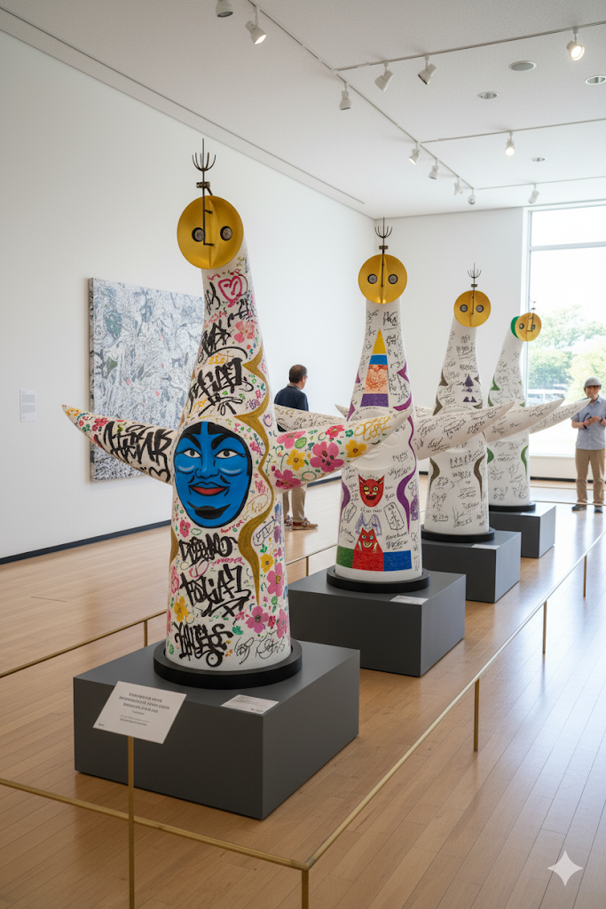 当社案:無地の太陽の塔のフィギュアにサインや色付け。