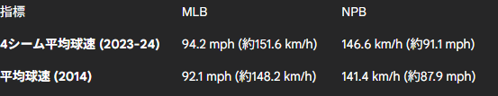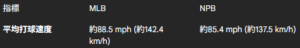 今回はメジャーリーグと日本プロ野球の投球速度と打球速度の比較表をGemni(Deep Research)で行いました。