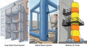 メリット: 空気圧で全体の形状を一気に立ち上げ、芯材が座屈(折れ)を防ぎます。
