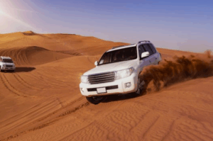 ★デザートサファリ:黄金の砂漠を4WDで爆走!非日常のスリルと夕日に感動。
