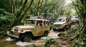 逆に沖縄あたりで「ジャングルサファリ」としてランクルやジムニーを使って(プロドライバーが過酷な道をドライブ:半分水没しての沢渡りや崖登りや丸太越え)ツアーを組むのもあり?