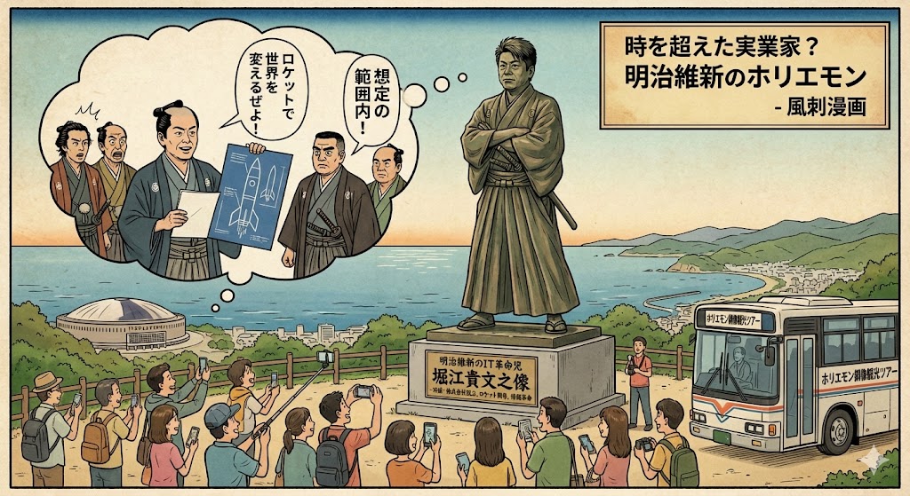逆にホリエモンが明治維新に行けば今頃、出身地福岡の海岸に銅像が立っていたかもしれませんね。