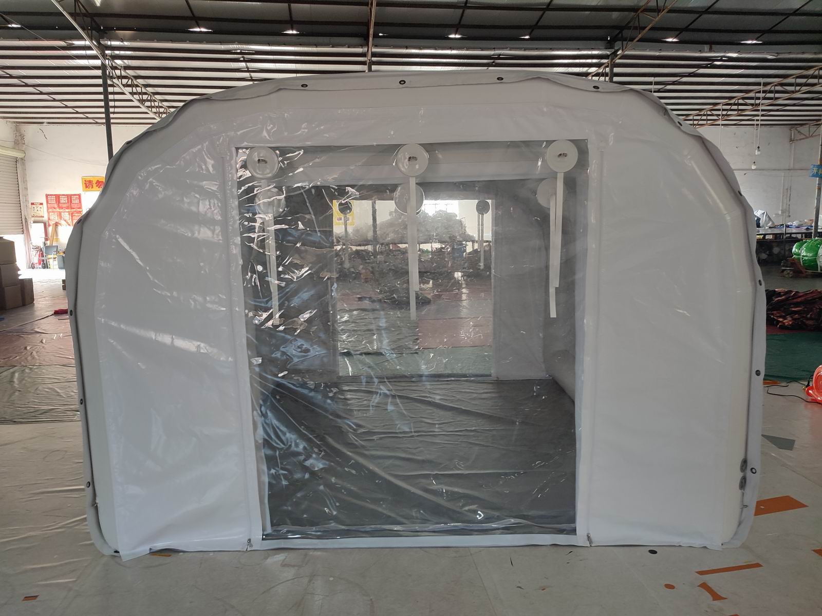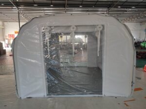 エア防災設備の救護用のテントが完成しました。