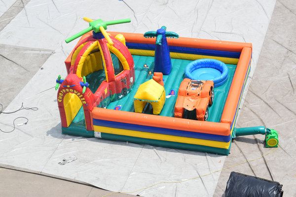 かわいい動物のポップアップをたくさん配置した幼児向けのエア遊具になります。