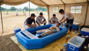 大きなプール(アイスバス)はいくらでも製作が可能なのですが大量の水を冷やす氷の調達が部活(学校)では難しいようですね。