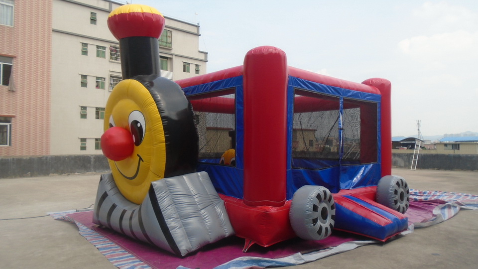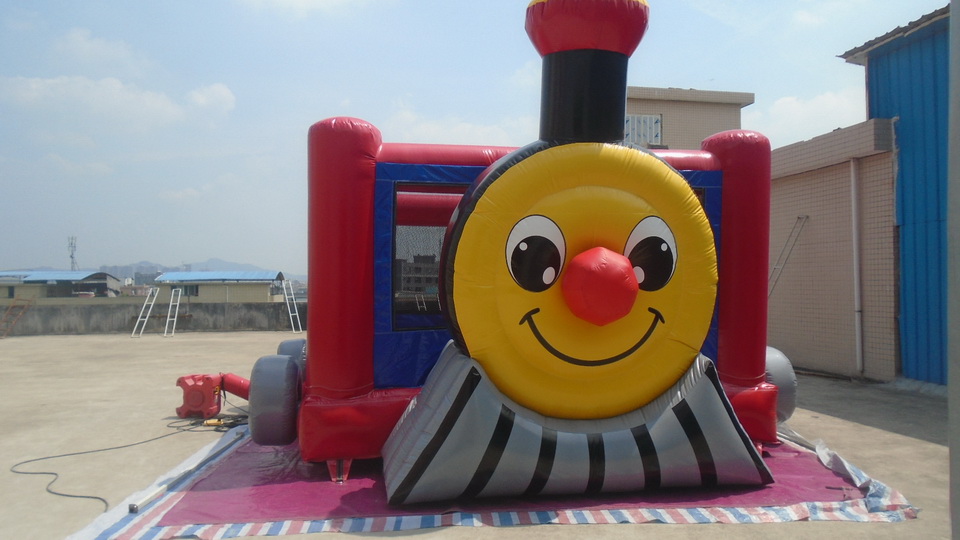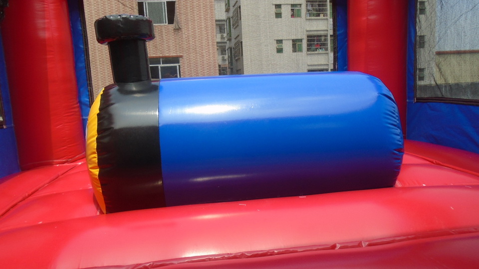 かわいい機関車をキャラクターにした機関車バウンサーが完成しました。 英語の機関車(ロコモーティブ)が難しいので「トレインバウンサー」と名乗っています。