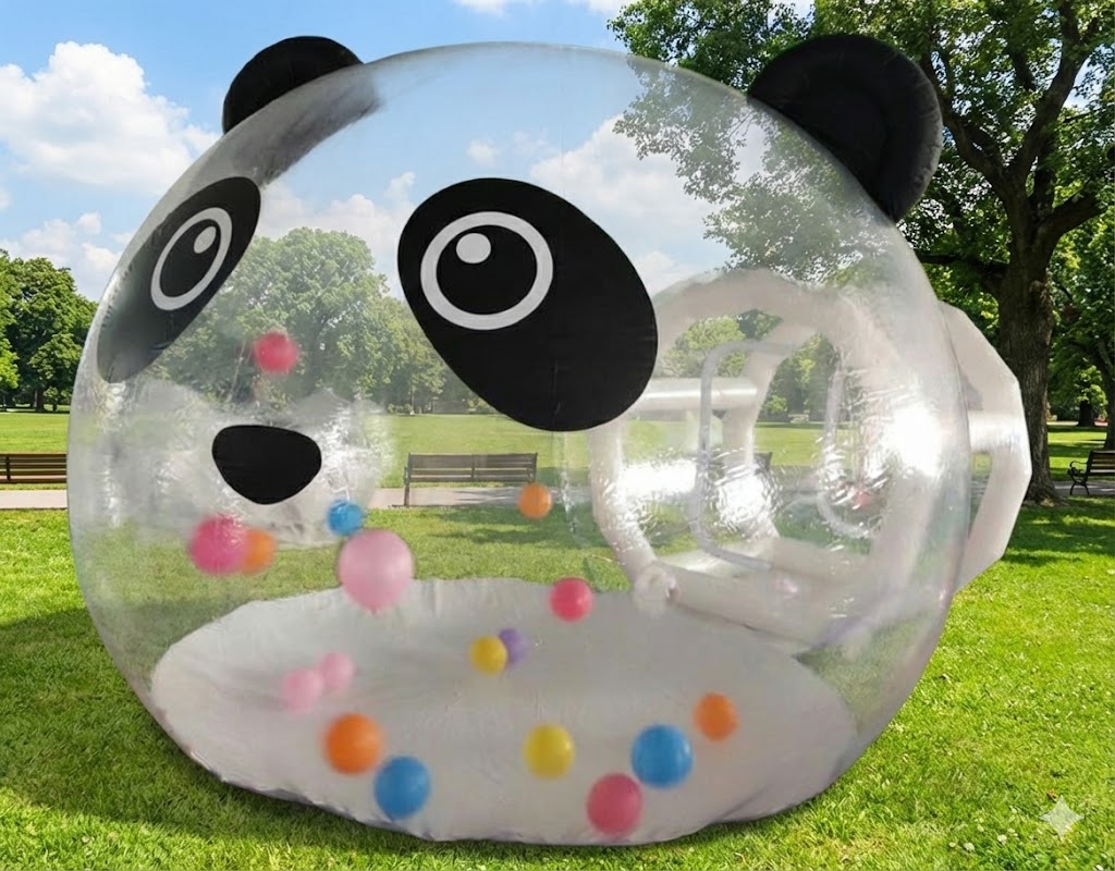いよいよ日本からパンダがいなくなりますのでバルーンドームでパンダを作ってみました。(AI)プリントシートを張るだけなので製作的には難しくないですが耳などつけると耐久性が落ちるかもしれませんね。