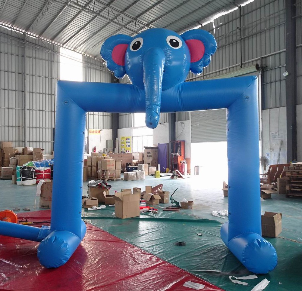 ペンギンとゾウのエアシャワーアーチが完成しました。