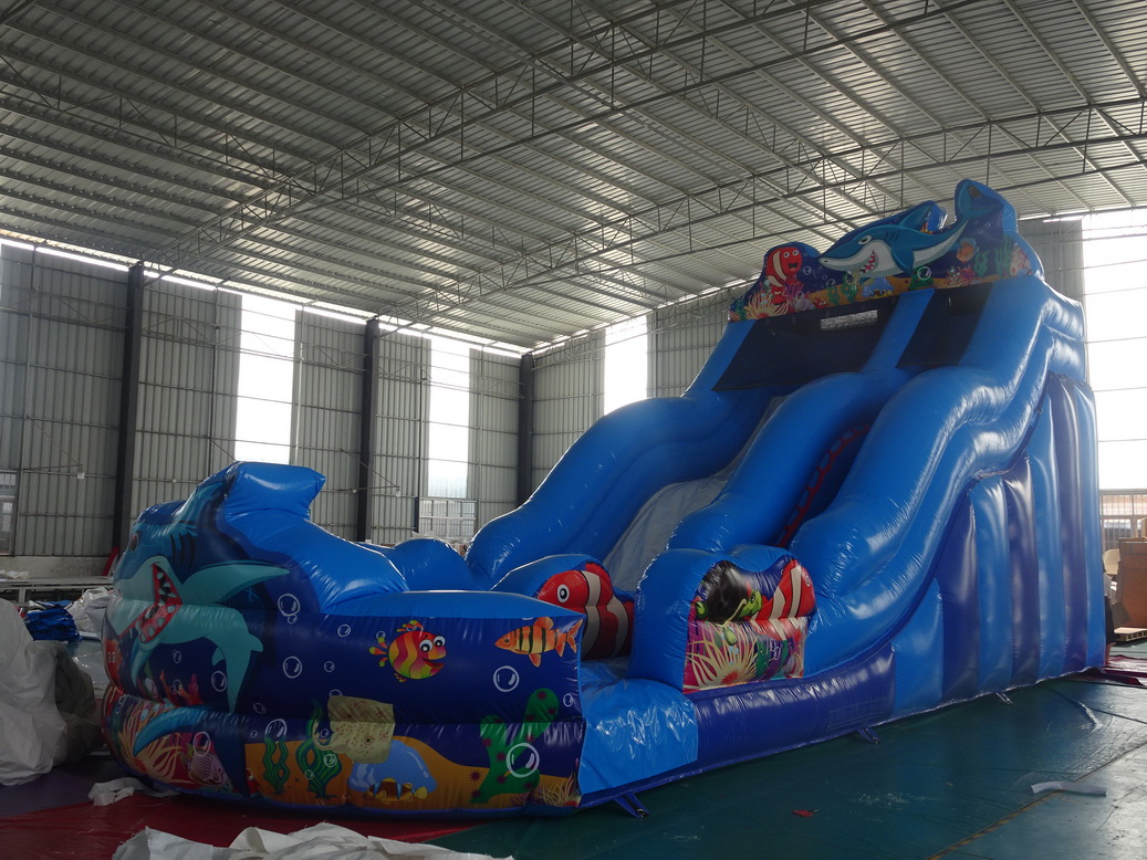 海の動物たちをデザインしたエアウォータースライダーが完成しました。