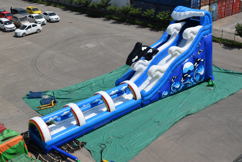 ウォーターパーク向けのジャンプスライダーとUターンスライダーが完成しました。(大きすぎてうまく写真に撮れませんね)